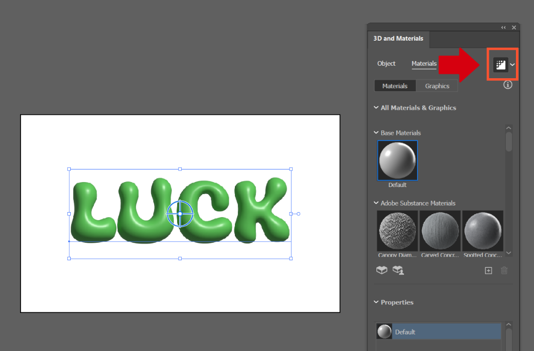 개체의 질감을 선택할 수 있는 메뉴입니다. 여기에서 화살표가 향하는 버튼 'Render with Ray Tracing'을 클릭하면 좀 더 광택이 생기는 걸 확인할 수 있어요. 이 기능은 내가 설정한 효과를 그대로 적용하여 보여줍니다. 일러스트가 느려지고 렉이 심해질 수 있어 작업 마지막 단계에서 클릭하는 추천드립니다.